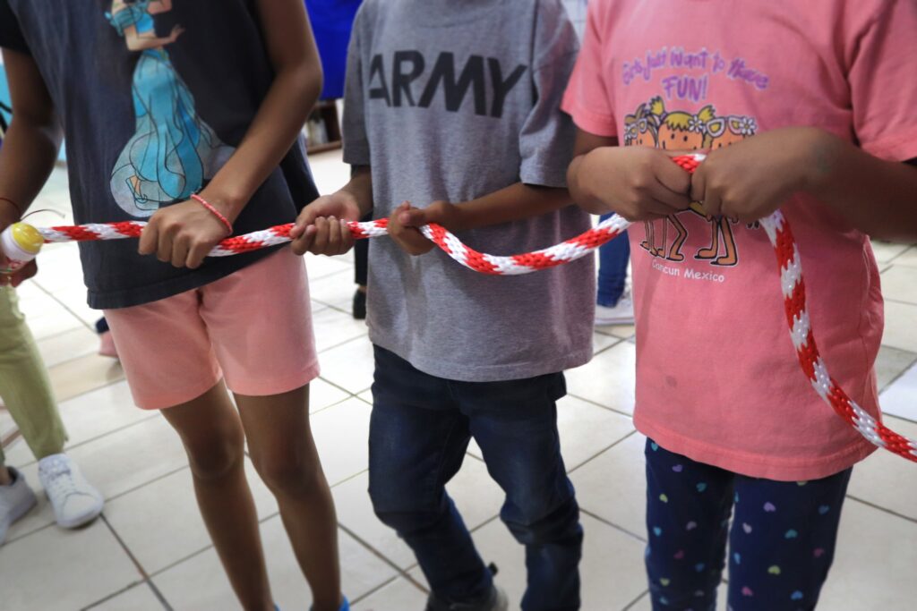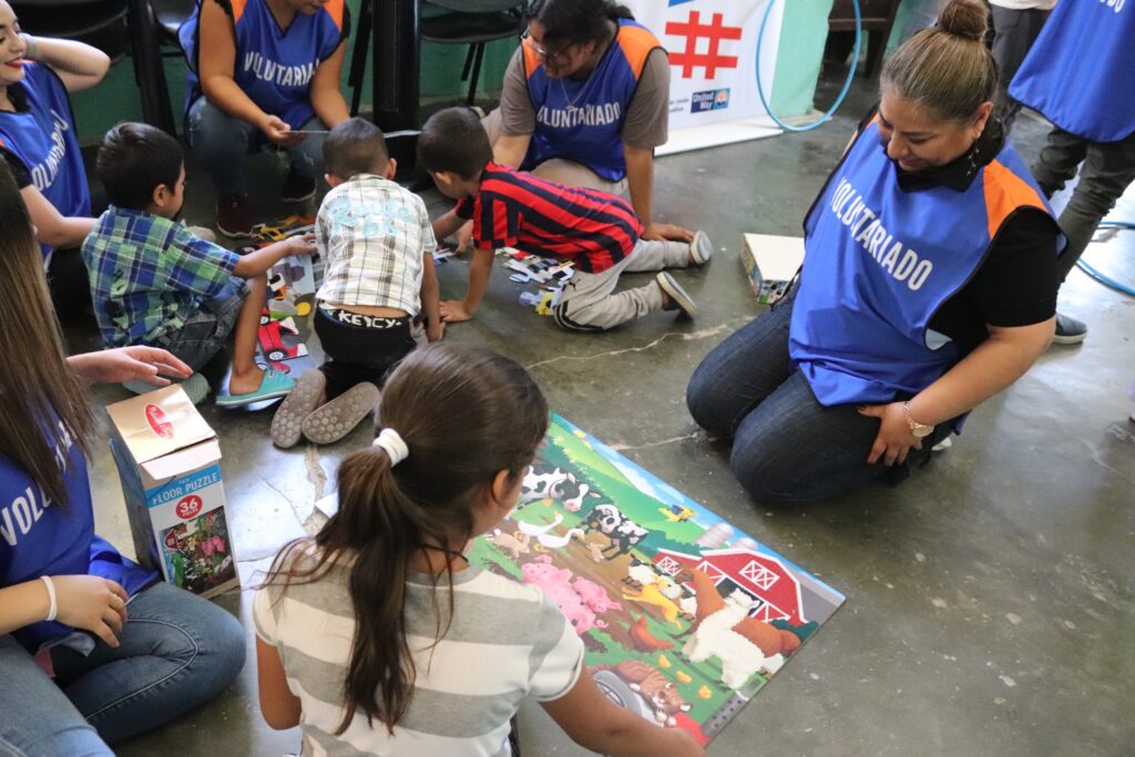 Contábamos con un completo kit de materiales para realizar actividades como juegos grupales, ejercicios de activación física y lectura de libros infantiles. Estas acciones estaban en línea con nuestro programa “Descubre jugando Ludoteca/Primera Infancia”. Antes de comenzar las actividades, los participantes recibieron una sesión de inducción y sensibilización sobre la realidad migrante, impartida por nuestro equipo de United Way Chihuahua y el personal de la red de albergues de nuestra ciudad.